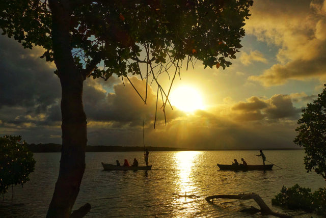 在位于肯尼亞東海岸的馬林迪,游人乘坐游船在瓦塔穆海洋國家公園游玩。新華社記者李琰攝