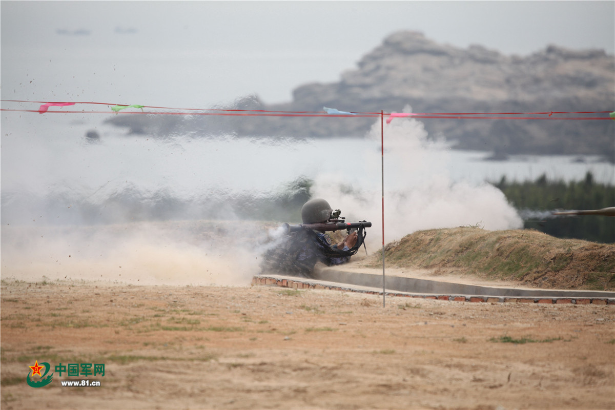 中國(guó)參賽隊(duì)員發(fā)射火箭筒。彭況攝