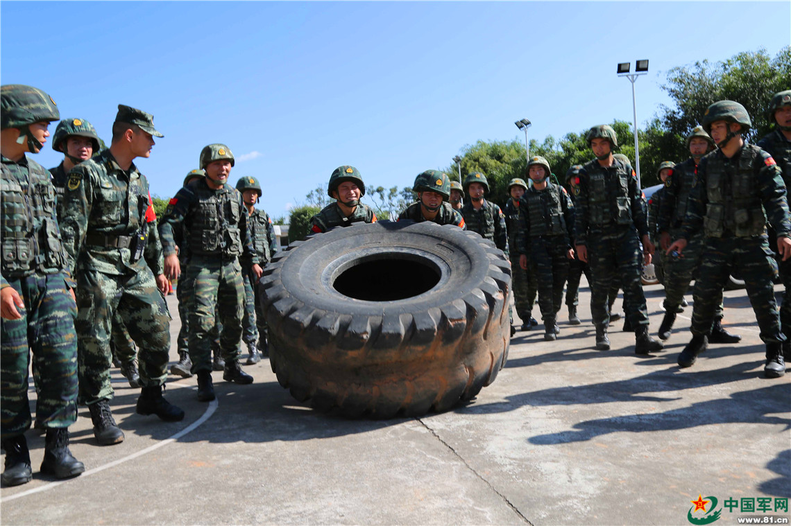 特戰(zhàn)隊員進行爆發(fā)力訓(xùn)練,翻滾輪胎。