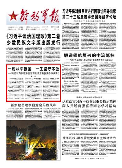 今天的《解放軍報》刊文指出,老英雄張富清在部隊保家衛(wèi)國,沖鋒陷陣、九死一生,立下赫赫戰(zhàn)功,兩次獲得“戰(zhàn)斗英雄”榮譽稱號。軍旅有限,兵心永駐;脫下軍裝,本色不改。帶著一名革命軍人的忠勇,他賡續(xù)紅色血脈,傳承軍人作風(fēng),公忠體國、盡職盡責(zé),有任務(wù)挺身而出,有困難沖鋒在前,不計得失、不慕虛名,是“退役不褪色,轉(zhuǎn)業(yè)不轉(zhuǎn)志”的先進典型,是廣大部隊官兵和退役軍人學(xué)習(xí)的榜樣。