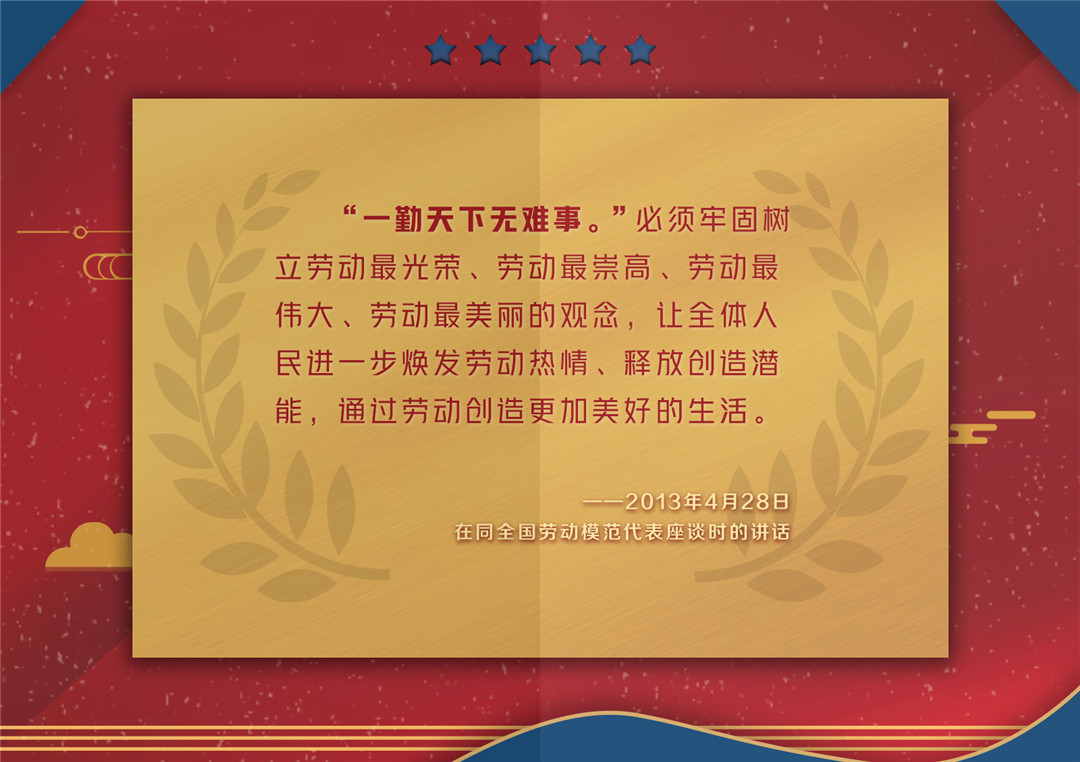 聯(lián)播+ “民生在勤,勤則不匱。”習近平總書記多次引用這句話來勉勵勞動者。從勞動人民中間走出來的習近平一直尊重勞動、關心勞動者,曾多次在不同場合贊美、肯定每一位勞動者的艱辛付出,號召廣大勞動群眾爭做新時代的奮斗者。今年是全面建成小康社會和“十三五”規(guī)劃收官之年。如今我國疫情防控形勢持續(xù)向好,各行各業(yè)積極復工復產(chǎn),正是擼起袖子加油干的奮進之時。讓我們重溫總書記的囑托,一起努力,一起拼搏,為實現(xiàn)今年經(jīng)濟社會發(fā)展目標和決勝全面建成小康社會而奮斗。