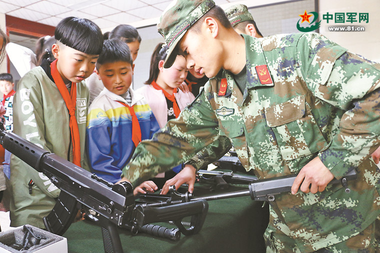 在我國第二個全民國家安全教育日來臨之際,武警河南總隊鶴壁支隊邀請鶴壁市第五小學師生到營區(qū)開展“國家安全連你我、軍民攜手筑長城”主題開放日活動,向學生們普及國防建設知識,提高國家安全意識。趙付威 攝