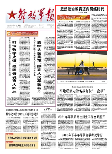 強(qiáng)軍網(wǎng)直通營(yíng)連班排、局域網(wǎng)貫通邊防海島、互聯(lián)網(wǎng)聯(lián)通軍營(yíng)內(nèi)外……“十三五”期間,軍隊(duì)信息網(wǎng)絡(luò)建設(shè)步伐不斷加快,不僅為高質(zhì)量開(kāi)展思想政治教育提供了硬件支撐,更催生了教育理念的創(chuàng)新。