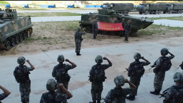 近日,海軍陸戰(zhàn)隊(duì)某旅在粵西某地進(jìn)行了一場(chǎng)登陸演練,演練采取陸、海、空立體協(xié)同攻擊的方式,對(duì)“敵”防御工事和預(yù)定目標(biāo)進(jìn)行打擊。