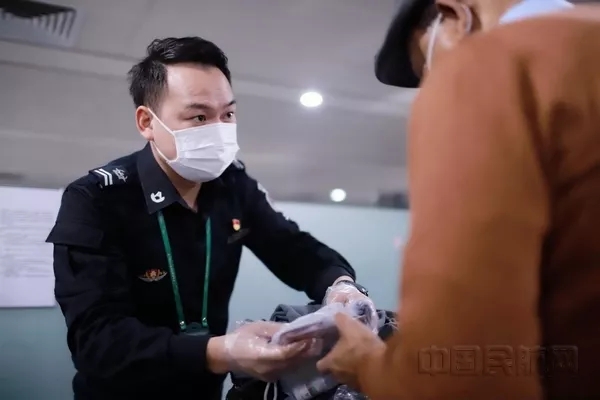 在進(jìn)入疫情防控期后,白云安檢工作人員上崗必須佩戴口罩手套,全副武裝起來。盡管如此,仍然有旅客在接受人身檢查時(shí)顯得有所顧慮——“你們安檢員每天要跟大量的旅客直接接觸,會(huì)不會(huì)容易引起交叉感染呢?”面對(duì)旅客的遲疑,鄧偉會(huì)取來消毒酒精說,“這是我們開通道前才用過的酒精”,并當(dāng)面給人身檢查員進(jìn)行手部消毒,徹底打消旅客的疑慮。