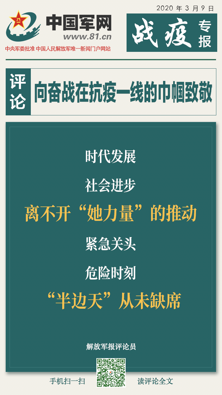 中國軍網(wǎng)戰(zhàn)疫專報|解放軍報評論員:向奮戰(zhàn)在抗疫一線的巾幗致敬