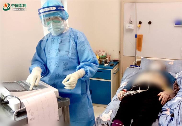 “快,5床,9床,22床要做心電圖”,組長馮娜話音剛落,穿著厚厚防護服的護士李建林就推著心電圖機器出發(fā)了,開機、消毒、連接、打印……全流程一氣呵成。