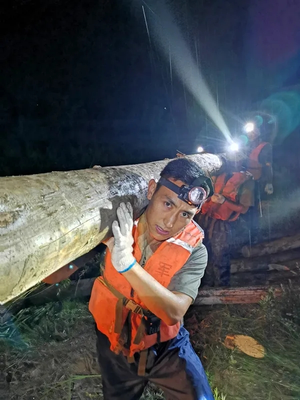 昨天剛吃過晚飯,連隊又接到搶險任務(wù)。這次,我?guī)ьI(lǐng)10個人的小組,到東風(fēng)河段協(xié)助地方處置滑坡。堤壩上,我們和地方群眾一起打樁加固堤壩,都搶著干最累的活。天下著淅淅瀝瀝的小雨,汗水夾雜著雨水,衣服濕了又干,干了又濕。凌晨,看到有的戰(zhàn)友和群眾累了,我就帶頭唱起軍歌,相互打氣,嘹亮的歌聲響徹堤壩。大家被火熱的氛圍感染著,又揮起鐵鍬、傳起沙袋。后半夜,我又帶人轉(zhuǎn)戰(zhàn)滁河西林段,和連隊大部隊匯合,處理漫堤險情。我們用一夜不眠,守護(hù)一城百姓安睡。