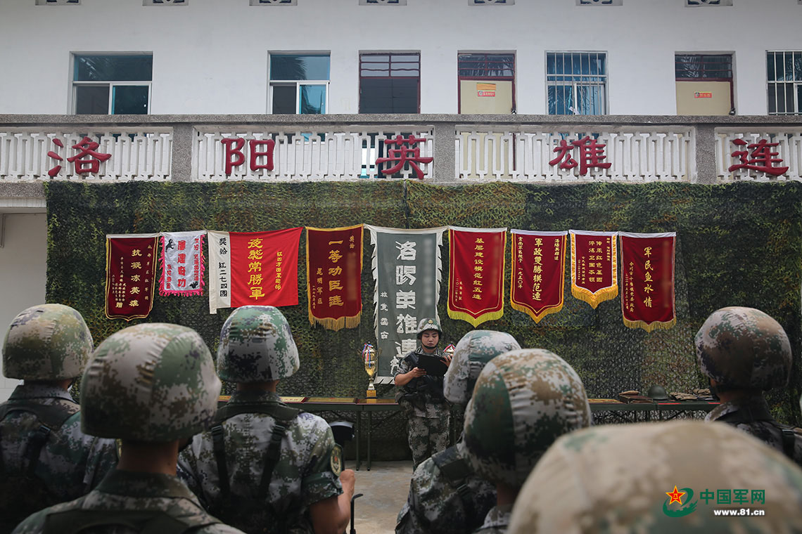 陸軍第75集團(tuán)軍某紅軍旅“洛陽英雄連”官兵開展外訓(xùn)出征儀式,官兵唱響連歌。中國軍網(wǎng)記者孫智英 攝