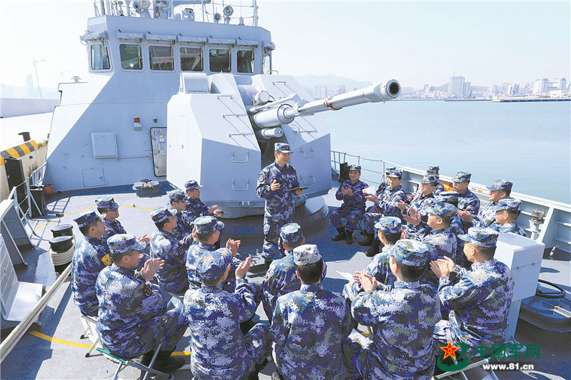 3月8日,海軍某護衛(wèi)艦支隊黃石艦在訓(xùn)練間隙組織官兵學(xué)習(xí)兩會精神,進一步激發(fā)練兵備戰(zhàn)熱情。 王光杰攝