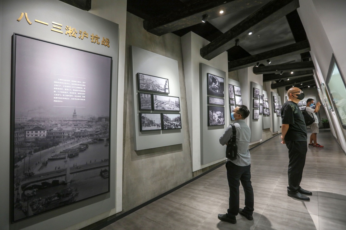 9月16日,人們在四行倉庫抗戰(zhàn)紀(jì)念館參觀。