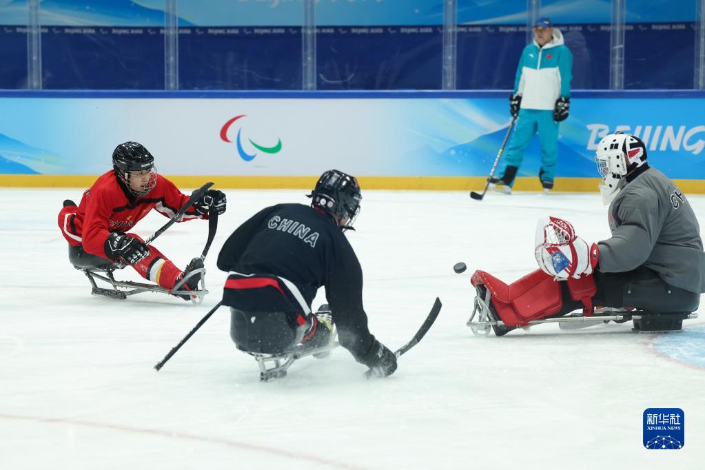 3月1日,中國殘奧冰球隊在訓練中。新華社記者 張可任 攝