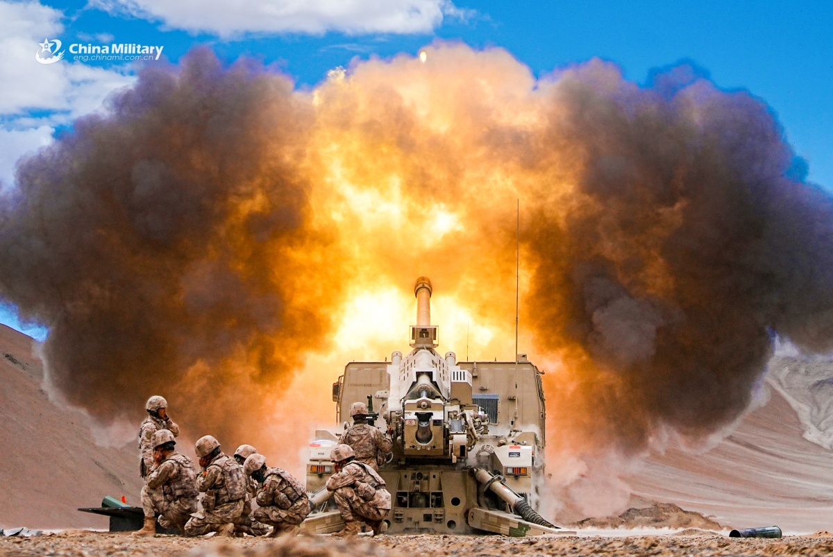 A PCL-181 155mm wheeled self-propelled howitzer attached to a regiment under the Chinese PLA Xinjiang Military Command opens fire during a live-fire assessment in late August, 2025. (eng.chinamil.com.cn/Photo by Chen Jiliang and Liu Fasen)