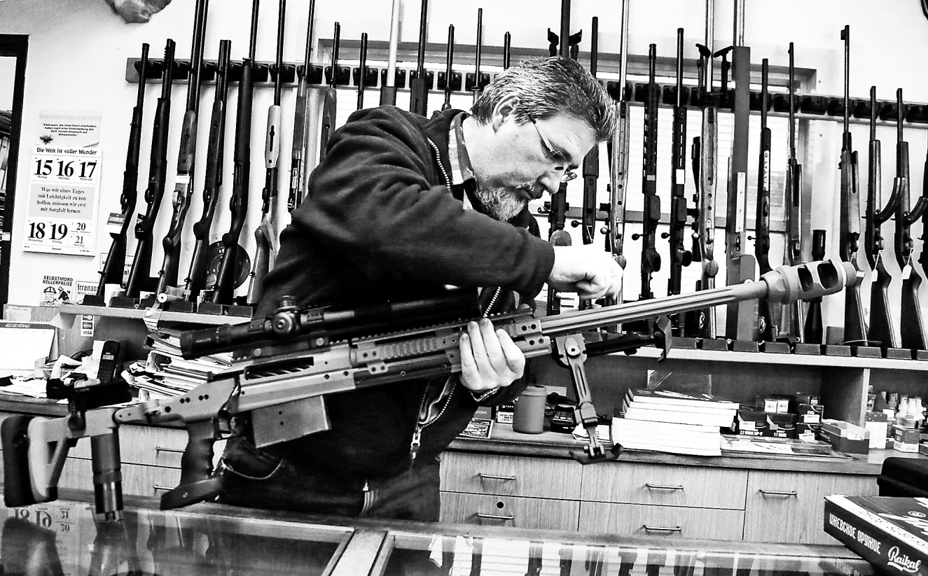 在奧地利維也納一家武器專賣店,店主檢查一支狙擊步槍。新華社發(fā)