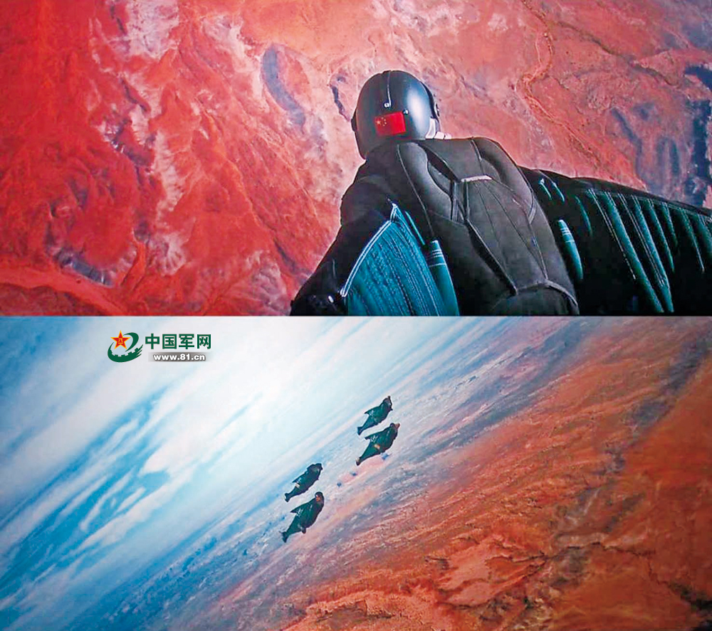 在蛟龍突擊隊偷襲恐怖分子“黃餅”交易現(xiàn)場的那場戲中,出現(xiàn)了單兵翼裝傘降系統(tǒng),該系統(tǒng)堪稱國產電影中首次出現(xiàn)的高大上裝備。