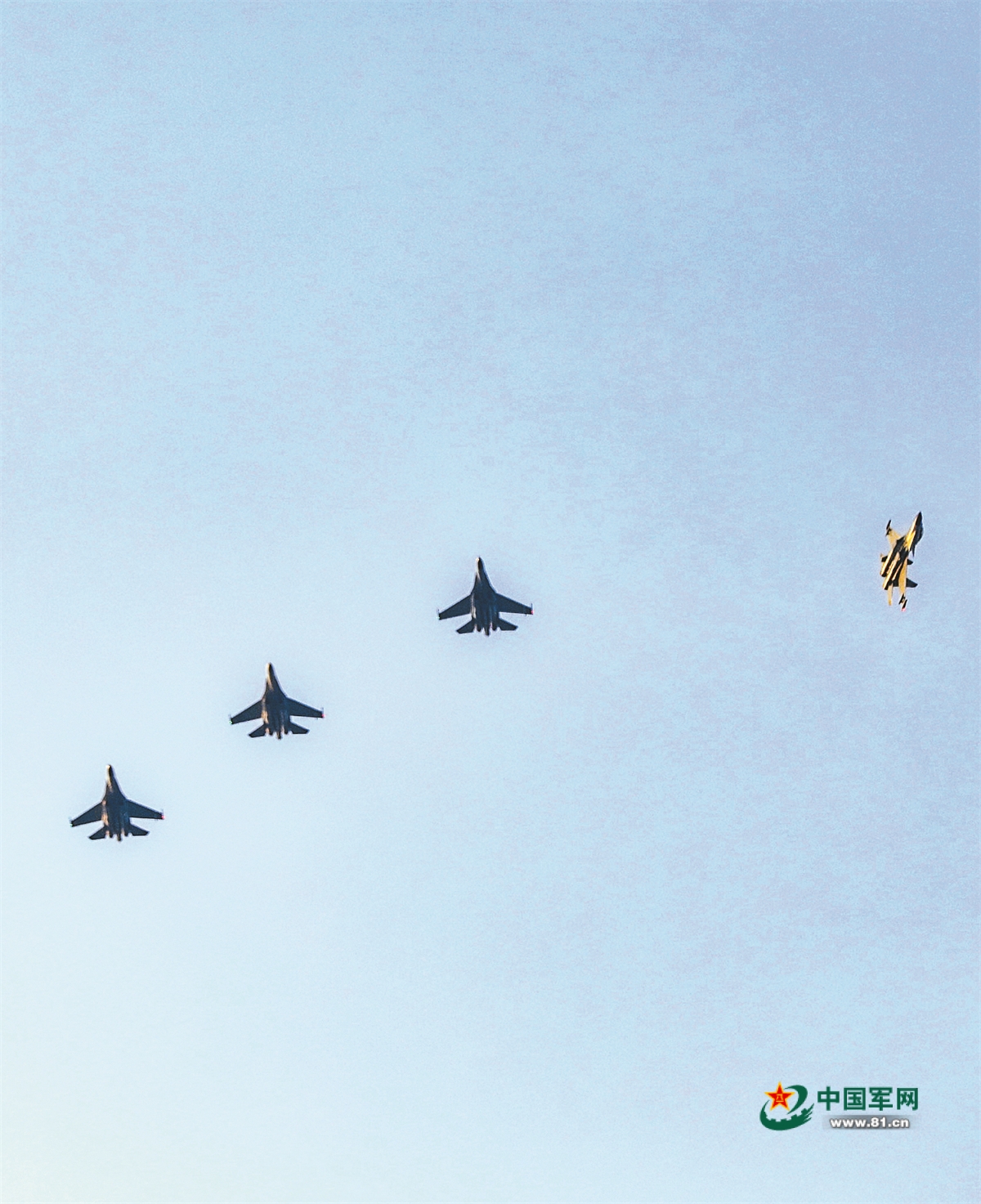 戰(zhàn)機(jī)(右一)脫離編隊,準(zhǔn)備實施單機(jī)突防。