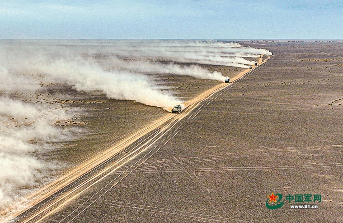 隨著數(shù)枚信號(hào)彈呼嘯升空,訓(xùn)練拉開(kāi)帷幕。戰(zhàn)車(chē)編隊(duì)向目標(biāo)地域疾馳而去,一路卷起滾滾塵煙。