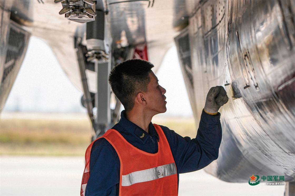 機務(wù)人員檢查戰(zhàn)機。喻澤琪 攝