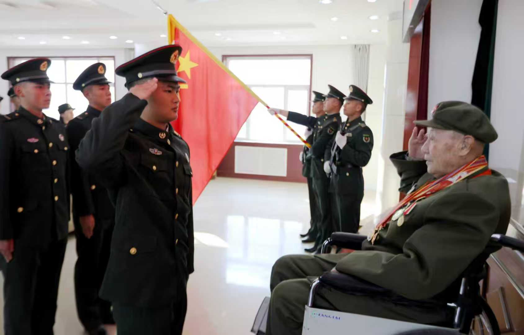 晨光中,歷經(jīng)戰(zhàn)火洗禮的鄭國(guó)卿老人胸前的軍功章熠熠生輝。他端坐輪椅之上,始終腰板挺直,目光深邃而堅(jiān)定,那雙曾經(jīng)緊握鋼槍、保家衛(wèi)國(guó)的手,沉穩(wěn)而鄭重地為新一代年輕戰(zhàn)士佩戴上嶄新的肩章。新戰(zhàn)士們軍姿挺拔、神情肅穆,與老兵目光交匯和相互敬禮,紅色血脈在無(wú)聲中奔涌流淌,忠誠(chéng)與擔(dān)當(dāng)?shù)幕蛟谛吕蟽纱娙酥g完成又一次傳承。