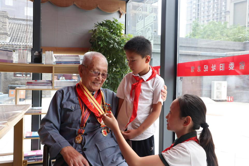 抗聯(lián)老戰(zhàn)士楊化烽為小學(xué)生講述戰(zhàn)斗故事