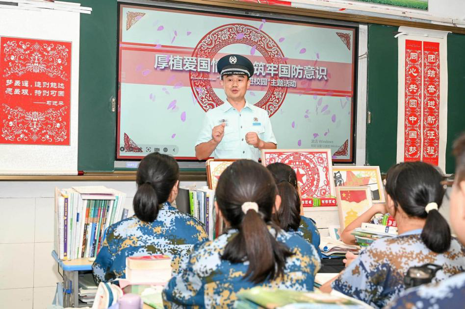 信息支援部隊(duì)某部組織官兵走進(jìn)駐地八一小學(xué),開(kāi)展“國(guó)防教育進(jìn)校園”活動(dòng),通過(guò)組織國(guó)防教育課、隊(duì)列動(dòng)作示范等,普及國(guó)防知識(shí),播下愛(ài)國(guó)強(qiáng)軍的種子。(管鵬赫、黃家文)