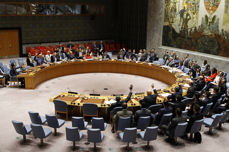 8月5日,在位于紐約的聯(lián)合國(guó)總部,各方代表就聯(lián)合國(guó)安理會(huì)針對(duì)朝鮮洲際彈道導(dǎo)彈試射實(shí)施新制裁的決議表決。 新華社記者李木子攝