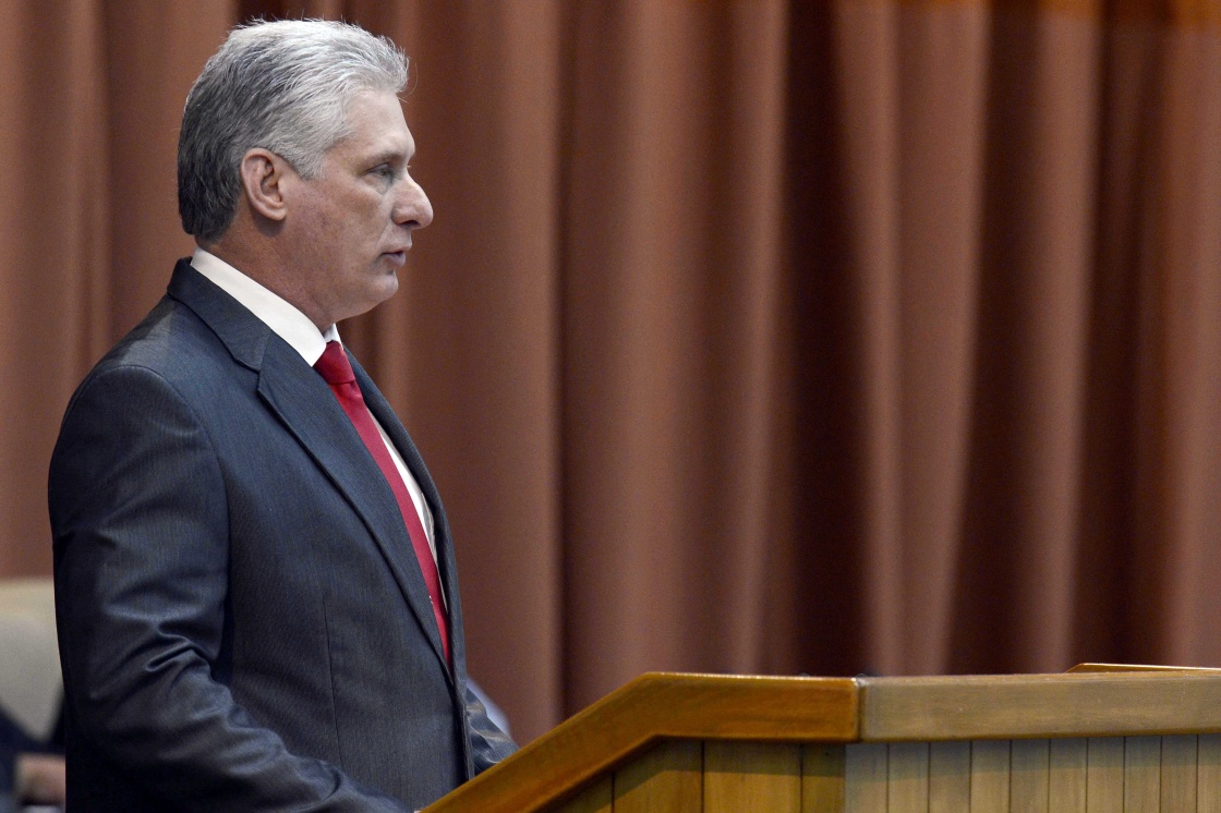 4月19日,在古巴首都哈瓦那,新當(dāng)選的國(guó)務(wù)委員會(huì)主席迪亞斯-卡內(nèi)爾發(fā)表講話。新華社發(fā)(華金·埃爾南德斯攝)