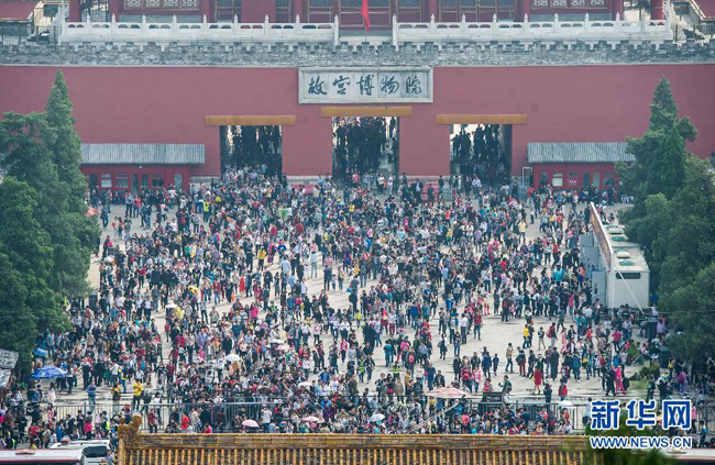 官方數(shù)據(jù)顯示,當(dāng)日故宮參觀人次達14.4萬人,比去年同日17.5萬人次有所減少。當(dāng)日是國慶長假第二天,各地來北京的游客數(shù)量不減,各景點游客爆棚,處處人山人海。據(jù)北京市假日工作領(lǐng)導(dǎo)小組辦公室統(tǒng)計,十一當(dāng)天北京全市重點監(jiān)測的26個景區(qū)共計接待游客54.2萬人次,比去年同期增長32.8%。