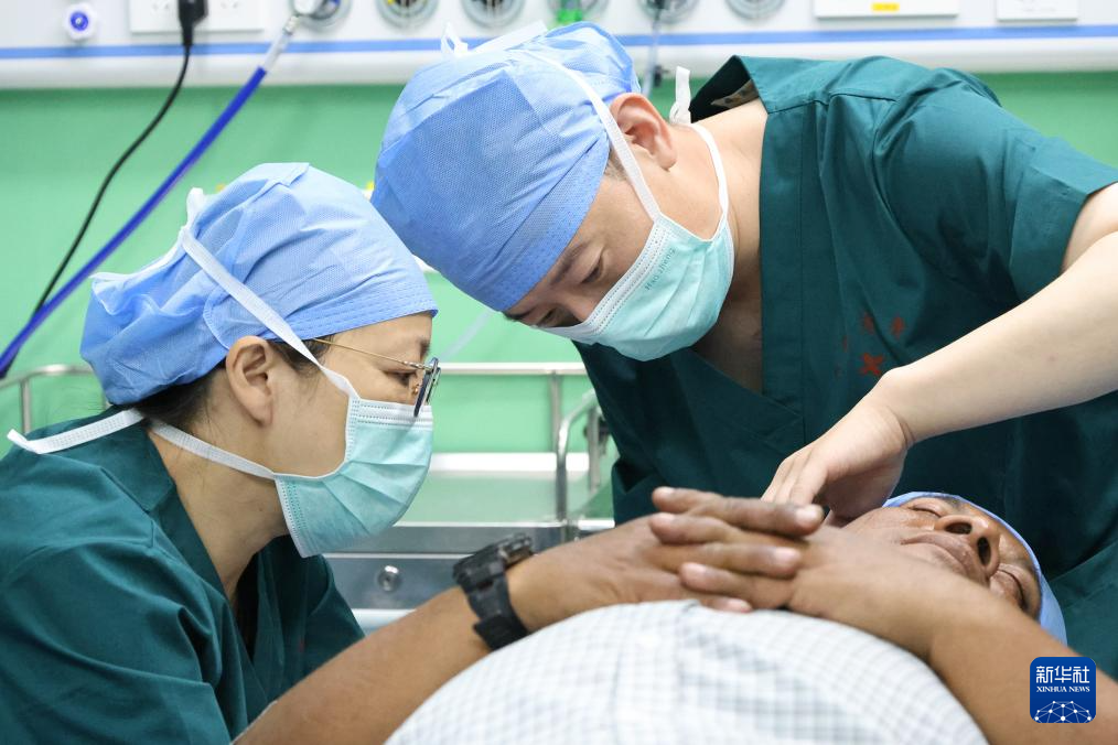 9月23日,中國(guó)海軍“絲路方舟”號(hào)醫(yī)院船醫(yī)護(hù)人員在瑙魯為當(dāng)?shù)孛癖娭委?。新華社發(fā)(崔曉洋攝)