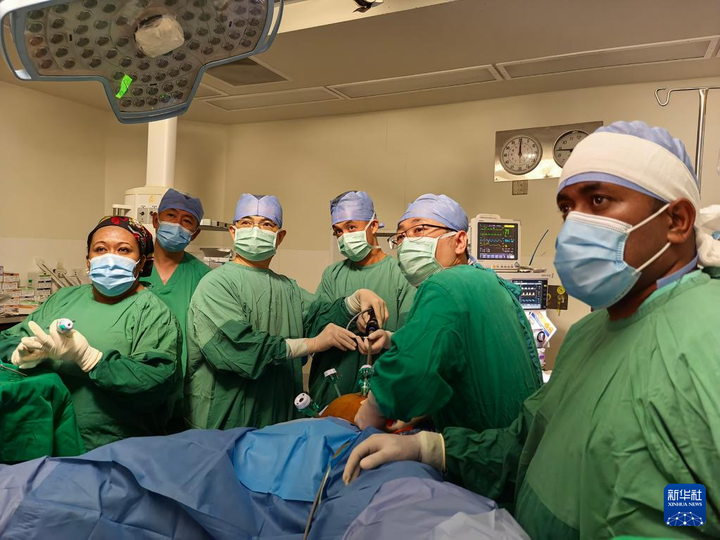 10月6日,在斐濟首都蘇瓦殖民戰(zhàn)爭紀念醫(yī)院,中國海軍“絲路方舟”號醫(yī)院船醫(yī)生與當?shù)蒯t(yī)生為患者進行手術(shù)。新華社發(fā)(崔曉洋攝)