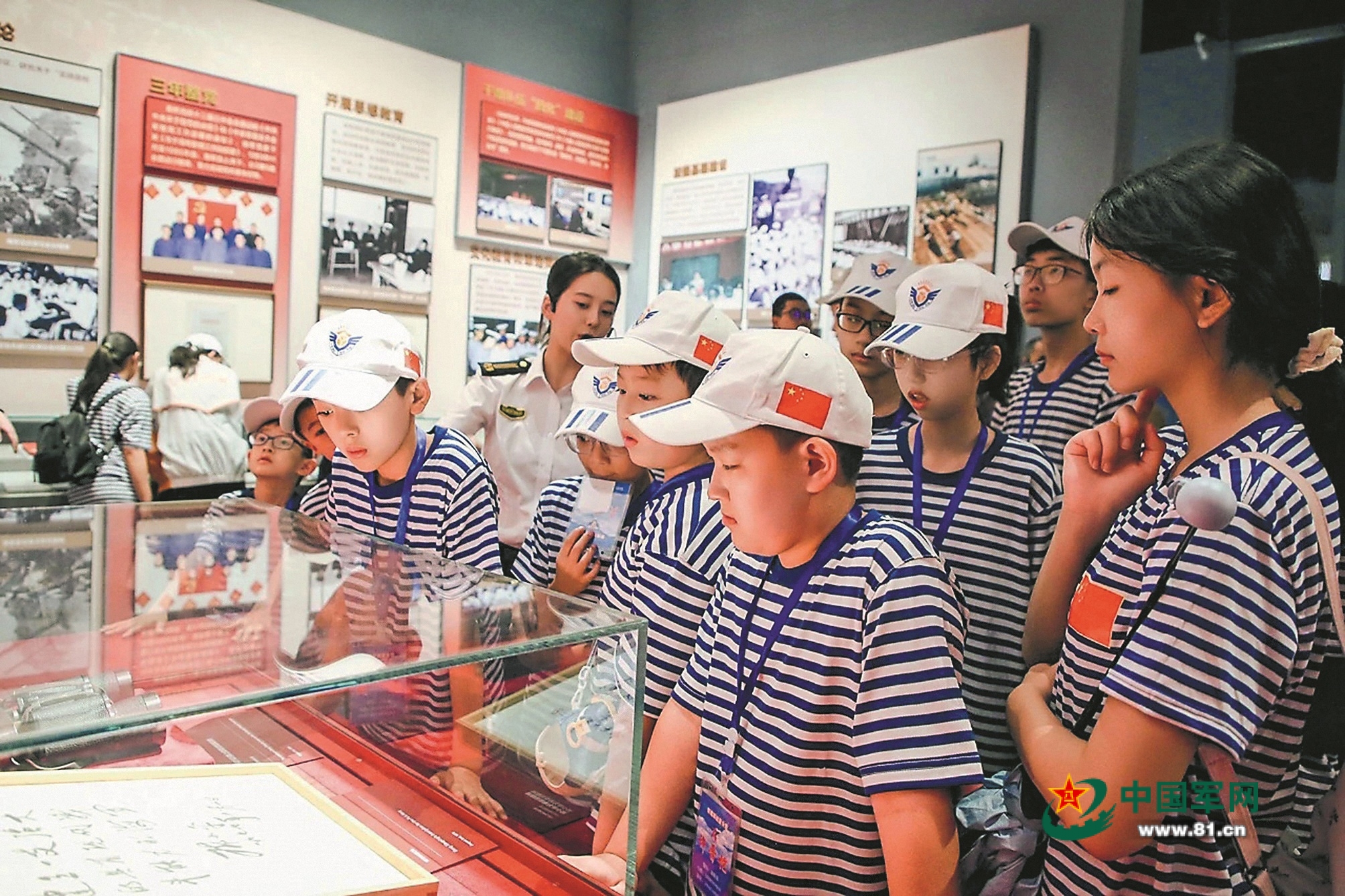 伴隨著講解員的解說,新中國成立前后的那段歷史呈現(xiàn)在人們眼前:1949年,中共中央討論通過了毛澤東起草的《目前形勢和黨在一九四九年的任務(wù)》并形成決議,決議指出:“應(yīng)當(dāng)組成一支保衛(wèi)沿海沿江的海軍。”1949年4月23日,中國人民解放軍第一支海軍部隊(duì)——華東軍區(qū)海軍在江蘇泰州白馬廟成立。自此,人民海軍正式啟航。