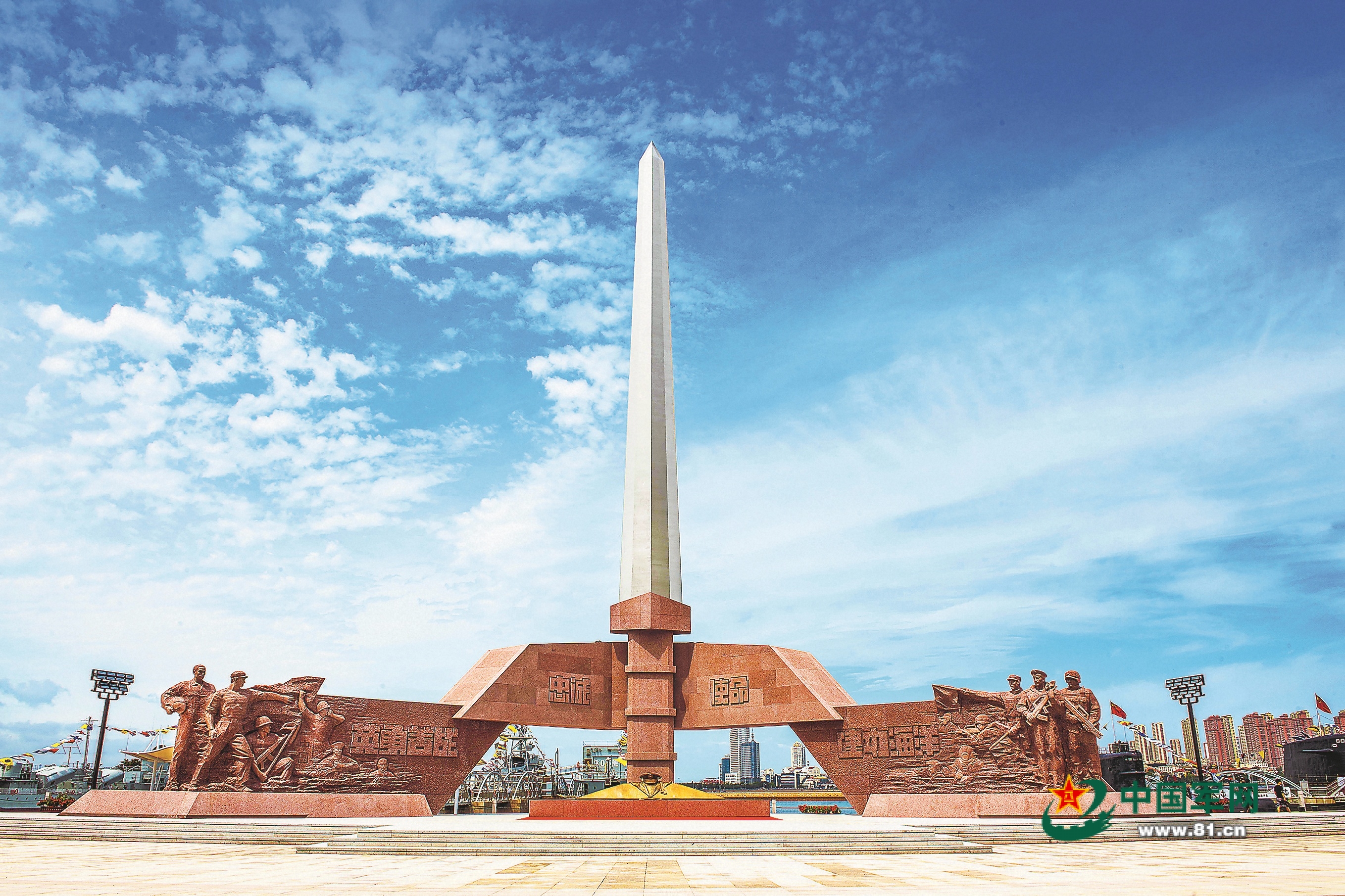 “我們的征途是星辰大海?!痹诤\姴┪镳^的前廣場上,陽光照耀下的“亮劍深藍(lán)”主題雕塑在藍(lán)天白云襯托下格外醒目,雕塑整體如同起錨待發(fā)的戰(zhàn)艦,一把利劍如桅桿直插云霄。