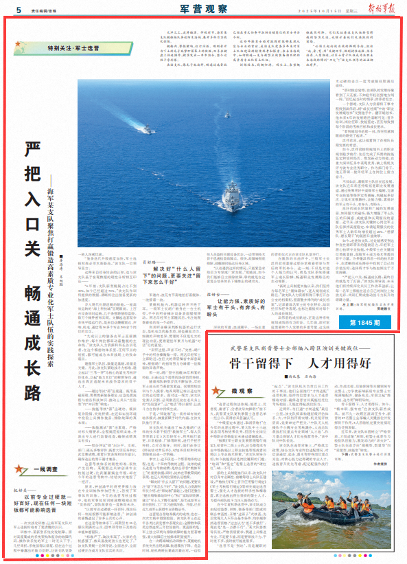 在該支隊,像毛子胤這樣,剛通過選晉就已經(jīng)在重大任務中擔綱關(guān)鍵崗位的軍士并非個例。