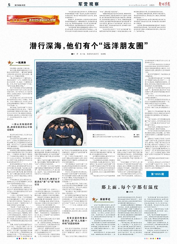 采訪中,一名艇員對我說:“在看不見陽光的深海里,我們需要一盞燈,照亮彼此的前行路?!?/p>