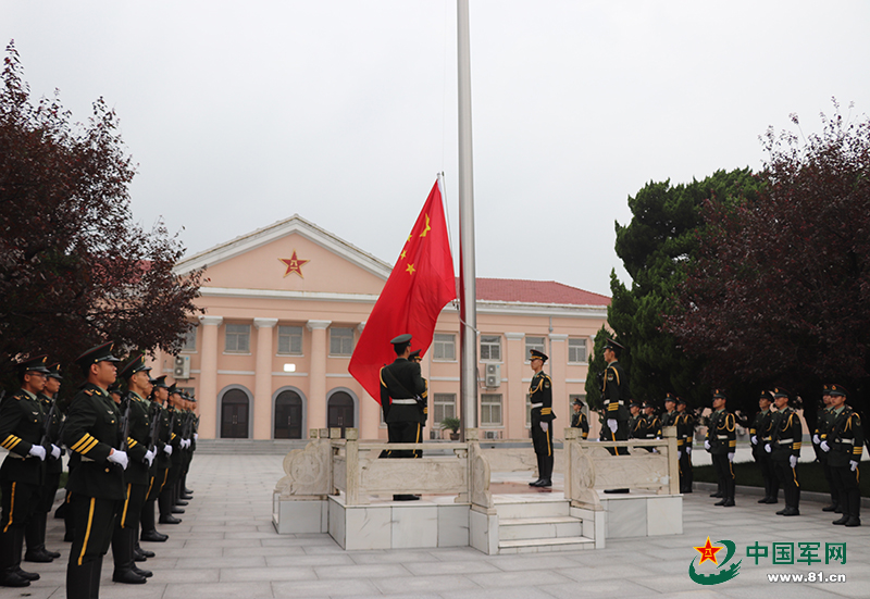 機(jī)關(guān)樓前松柏蒼翠勁拔,國(guó)旗臺(tái)下官兵們軍姿挺拔。儀式一開(kāi)始,護(hù)旗方陣拾級(jí)而上,正步鏗鏘。伴隨著激揚(yáng)的國(guó)歌聲,在場(chǎng)官兵向獵獵國(guó)旗莊嚴(yán)敬禮,激情澎湃的場(chǎng)面直撼人心。