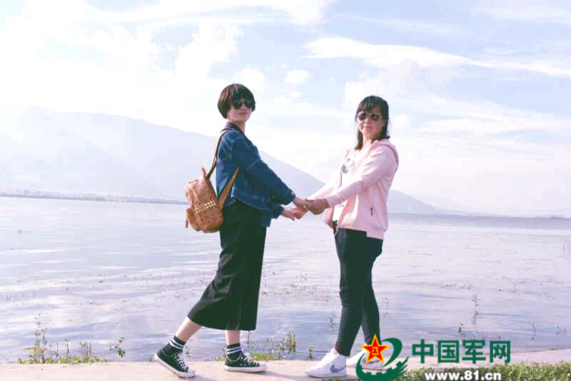 第80集團(tuán)軍某旅女兵段欽佩休假期間跟媽媽一起出去旅游