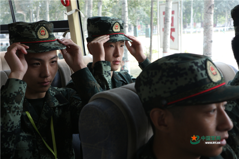大巴車抵達(dá)營(yíng)區(qū),新戰(zhàn)友們下車前認(rèn)真的整理自己的著裝