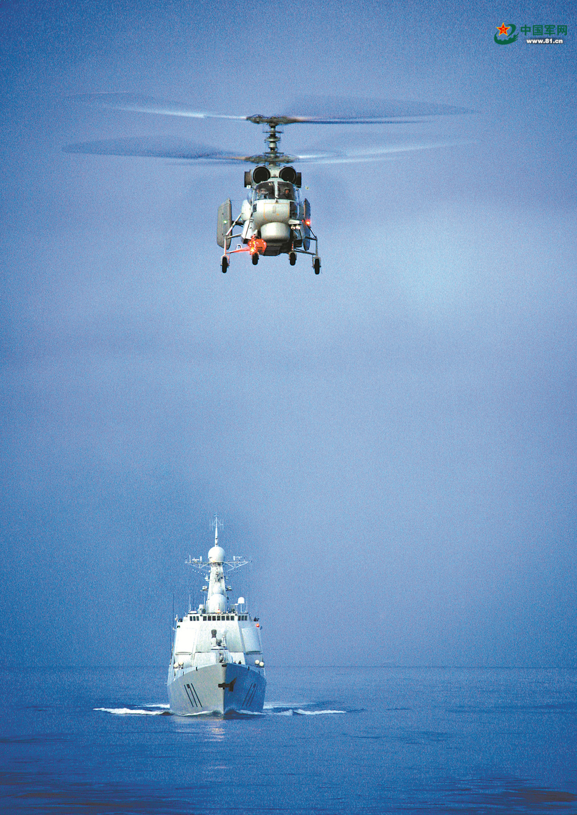 在亞丁灣執(zhí)行護航任務期間,??谂炦M行艦機協(xié)同演練。
