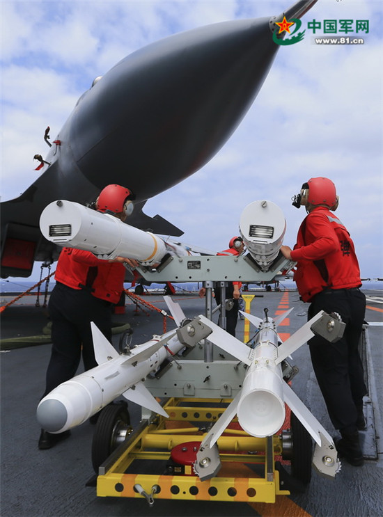 航空保障部門彈藥裝卸員轉(zhuǎn)運導(dǎo)彈。記者張雷 攝