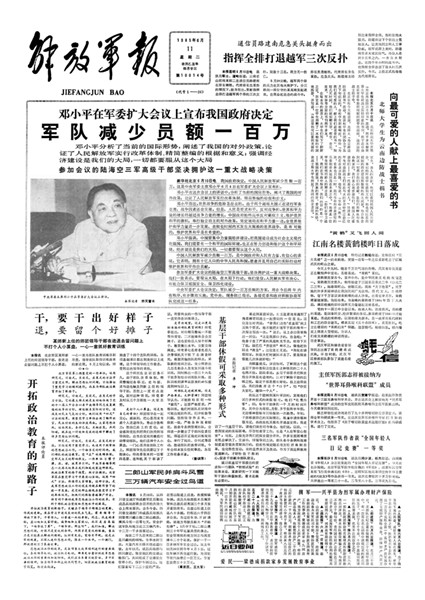 1985年5月23日-6月6日,中央軍委召開擴(kuò)大會議。鄧小平在會上宣布:中國人民解放軍減少員額100萬。會議作出軍隊(duì)建設(shè)指導(dǎo)思想實(shí)行戰(zhàn)略性轉(zhuǎn)變的重大決策。1997年9月12日,江澤民在中共十五大報(bào)告中宣布:在20世紀(jì)80年代裁減軍隊(duì)員額100萬的基礎(chǔ)上,我國將在今后3年內(nèi)再裁減軍隊(duì)員額50萬。2003年9月1日,江澤民在出席慶祝國防科學(xué)技術(shù)大學(xué)成立50周年大會時(shí)宣布:在“九五”期間裁減軍隊(duì)員額50萬的基礎(chǔ)上,2005年前我軍再裁減員額20萬。2015年9月3日,紀(jì)念中國人民抗日戰(zhàn)爭暨世界反法西斯戰(zhàn)爭勝利70周年大會和閱兵儀式舉行。習(xí)近平檢閱受閱部隊(duì)并發(fā)表講話,宣布中國將裁減軍隊(duì)員額30萬。