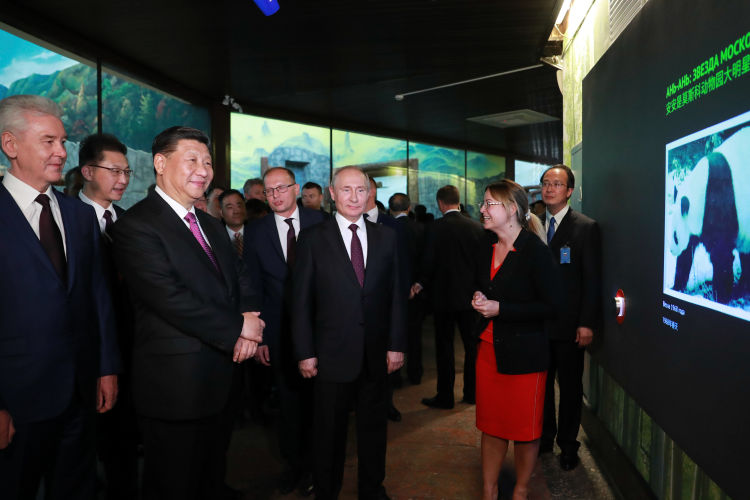 6月5日,國(guó)家主席習(xí)近平在莫斯科克里姆林宮同俄羅斯總統(tǒng)普京會(huì)談。這是會(huì)談后,兩國(guó)元首共同出席莫斯科動(dòng)物園熊貓館開(kāi)館儀式。新華社記者丁林?jǐn)z