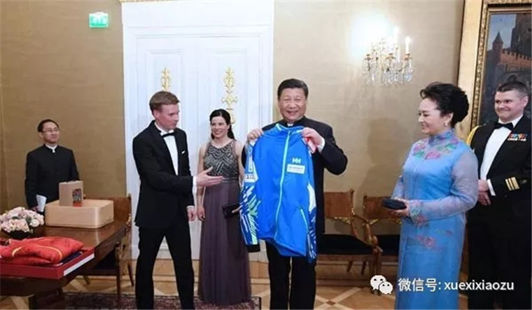2017年4月5日,芬蘭赫爾辛基。習(xí)近平在此會(huì)見了剛剛參加完世界花樣滑冰錦標(biāo)賽的中芬兩國運(yùn)動(dòng)員代表,并獲贈(zèng)一件寫滿隊(duì)員名字的運(yùn)動(dòng)服?!斑@里也許有許多未來世界冠軍的名字?!绷?xí)近平笑著說。
