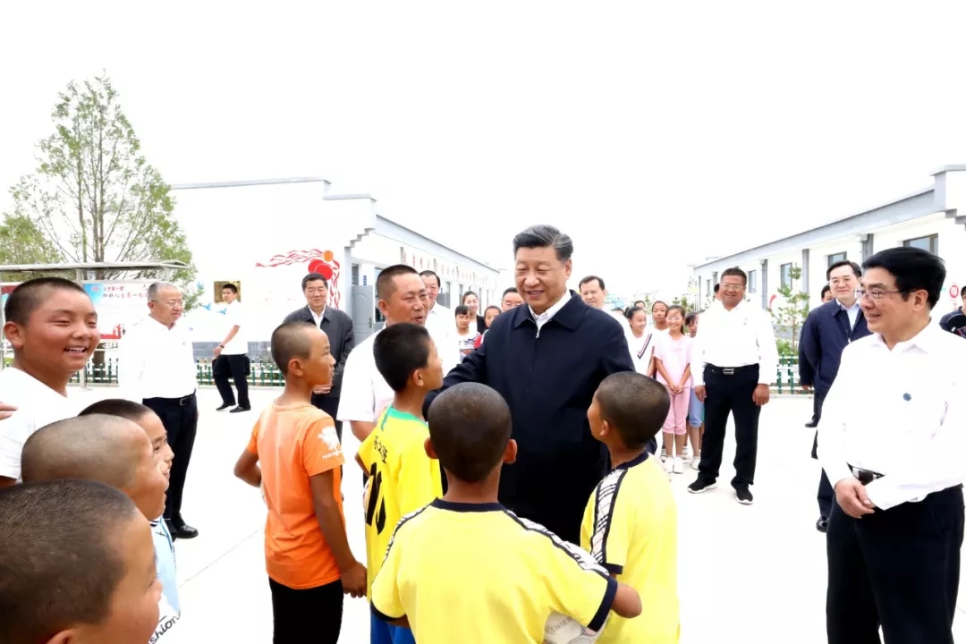 習(xí)近平在武威市古浪縣黃花灘生態(tài)移民區(qū)富民新村富民小學(xué)的音樂教室,認(rèn)真觀看正在進(jìn)行的音樂課教學(xué)。?