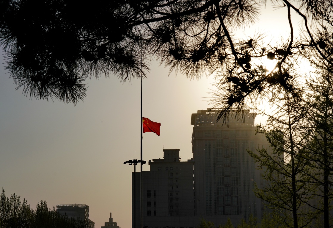 4月4日,石家莊民心廣場(chǎng)下半旗志哀。新華社記者 牟宇 攝