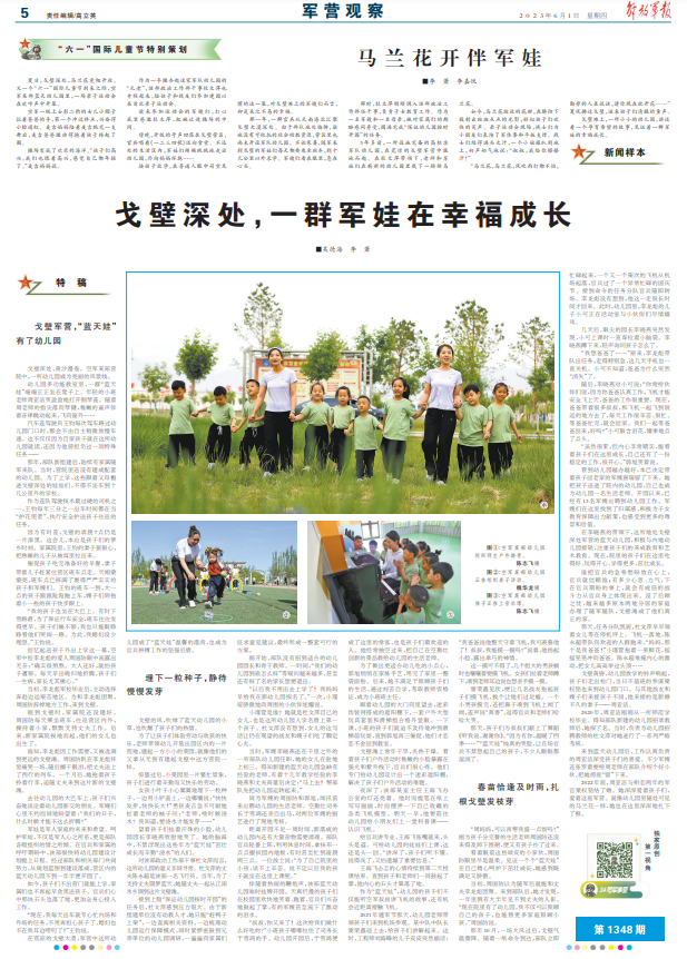 如今,馬蘭花綻放的花瓣,在驕陽下投射出斑斑點(diǎn)點(diǎn)的光影,好似孩子們歡快的笑聲。親子運(yùn)動會現(xiàn)場,戰(zhàn)士們?yōu)樾∨笥褌儽硌萘塑婓w拳和平板支撐。戰(zhàn)士們練得滿頭大汗,一個小姑娘趴到地上,奶聲奶氣地說:“叔叔,我給你擦擦汗!”