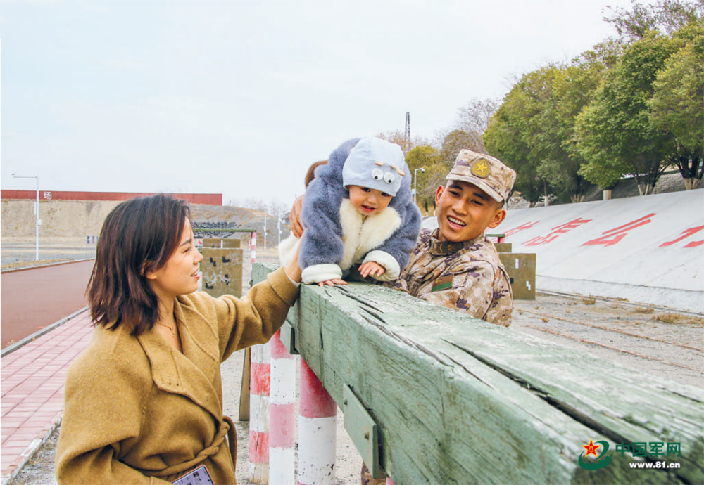 近日,新疆軍區(qū)某部中士安樂的家人來隊探親。圖為安樂和妻兒在一起。劉錦濤攝