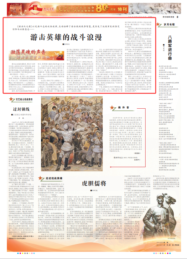 《游擊隊(duì)之歌》以充滿斗志的歡快旋律,生動(dòng)詮釋了游擊戰(zhàn)的戰(zhàn)爭(zhēng)智慧,更抒發(fā)了抗戰(zhàn)軍民的堅(jiān)定信仰與必勝意志——