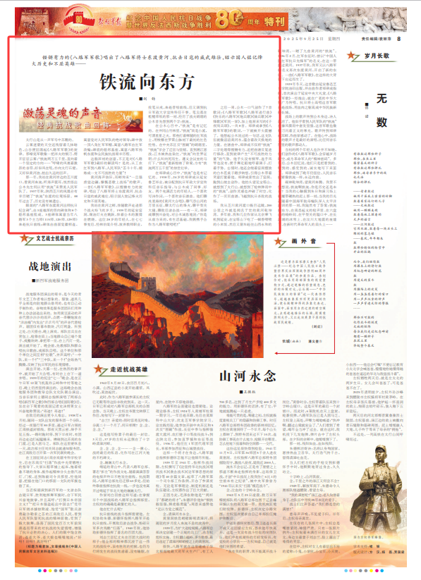 鏗鏘有力的《八路軍軍歌》唱出了八路軍將士東渡黃河、抗擊日寇的威武雄壯,昭示國人銘記烽火歷史和不屈英雄——