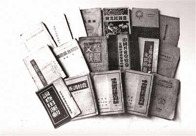 抗日戰(zhàn)爭和解放戰(zhàn)爭中,報(bào)社出版印刷的部分書籍。資料照片