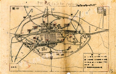 解放軍檔案館館藏檔案一九四四年新四軍第一師司令部《車橋戰(zhàn)役經(jīng)過圖之一》。